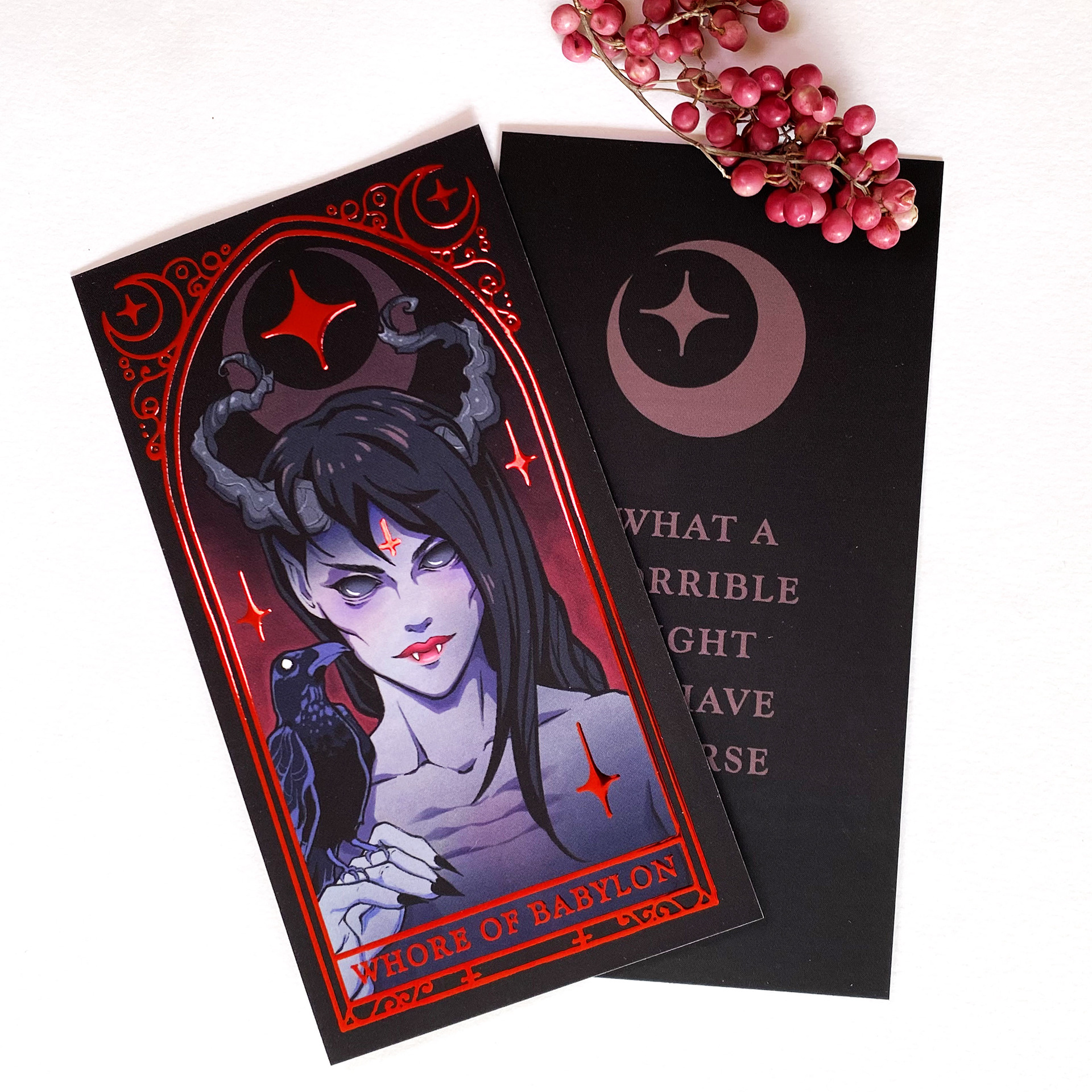 - 1 carte recto/verso à dorure rouge 15x8 cm 350g couché demi-mat