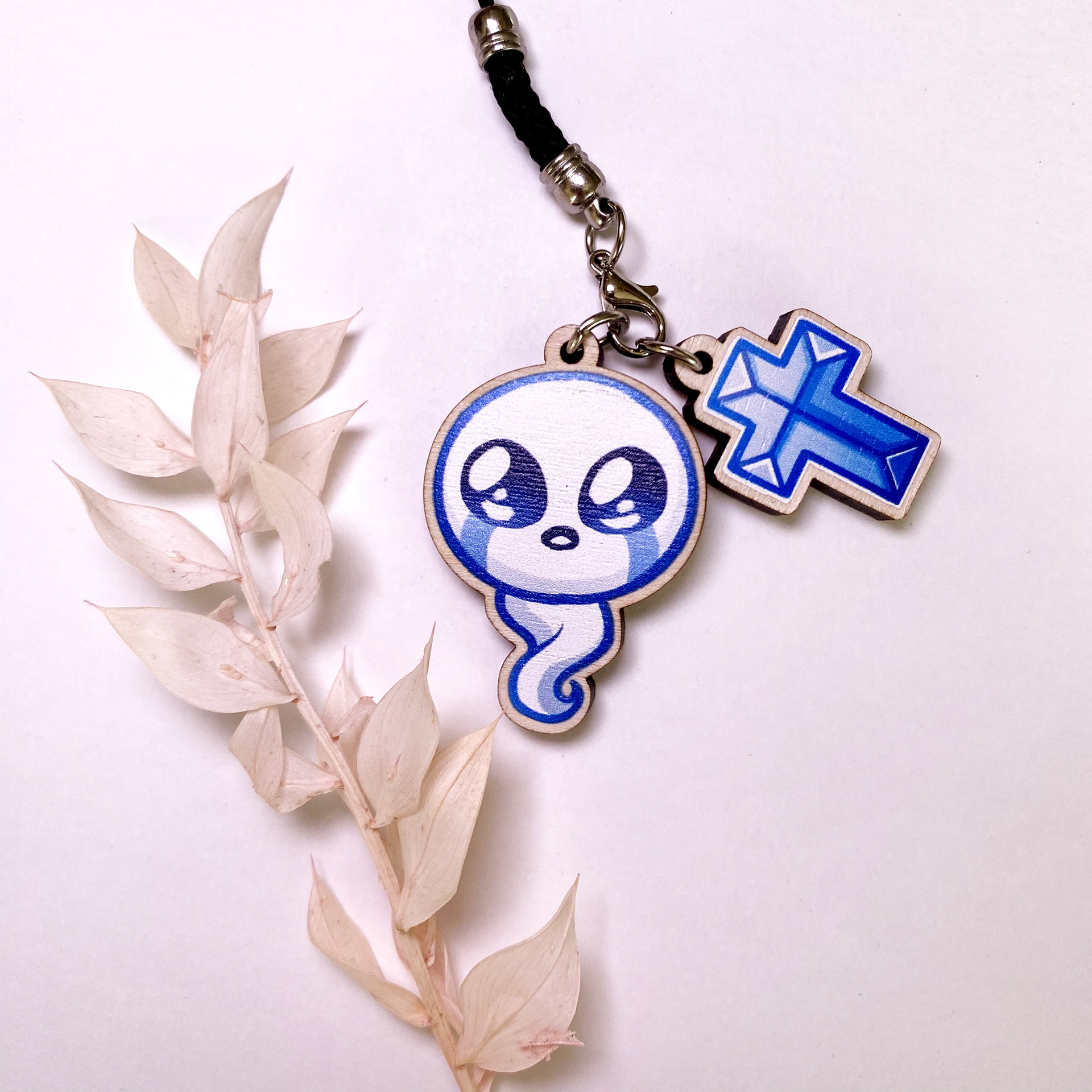 - Porte-clé en bois 3,8 cm + charme supplémentaire de 2,5 cm