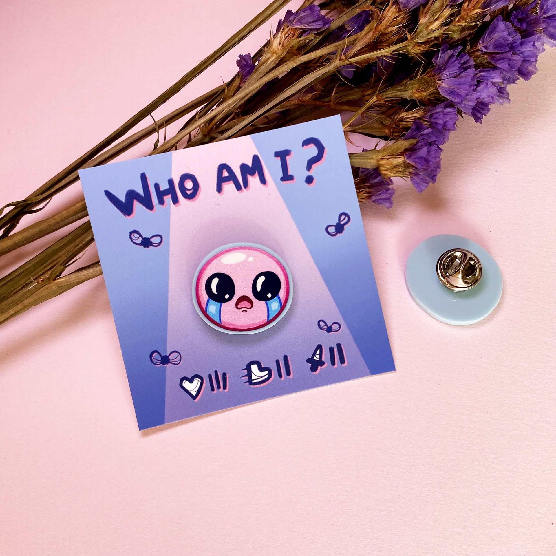 - Pin's 2,5 x 2,5 cm Acrylique premium rose pastel Pantone + pelliculage gloss + carte